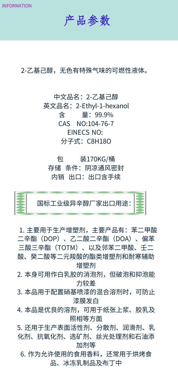 | 产品名称 | 异辛醇 | ||