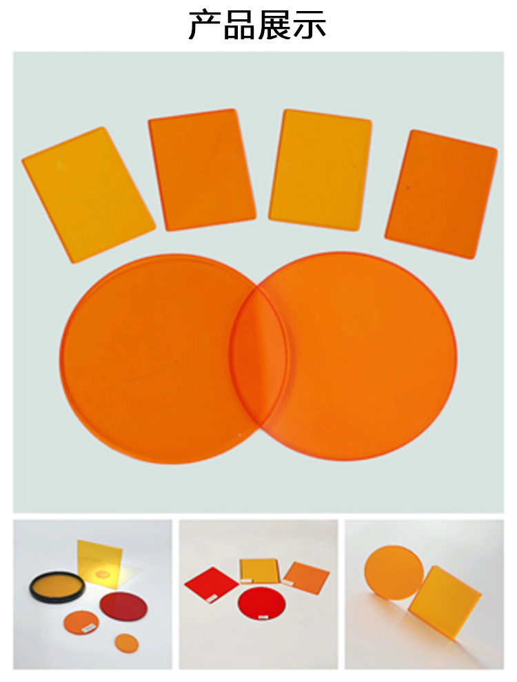 4.此系列有多种型号,均是透过橙色光波段,不同型号颜色不同,透过的波段不一样,不应以颜色作为选型的依据,请结合实际应用确定需要透过的波段来选择合适的牌号。