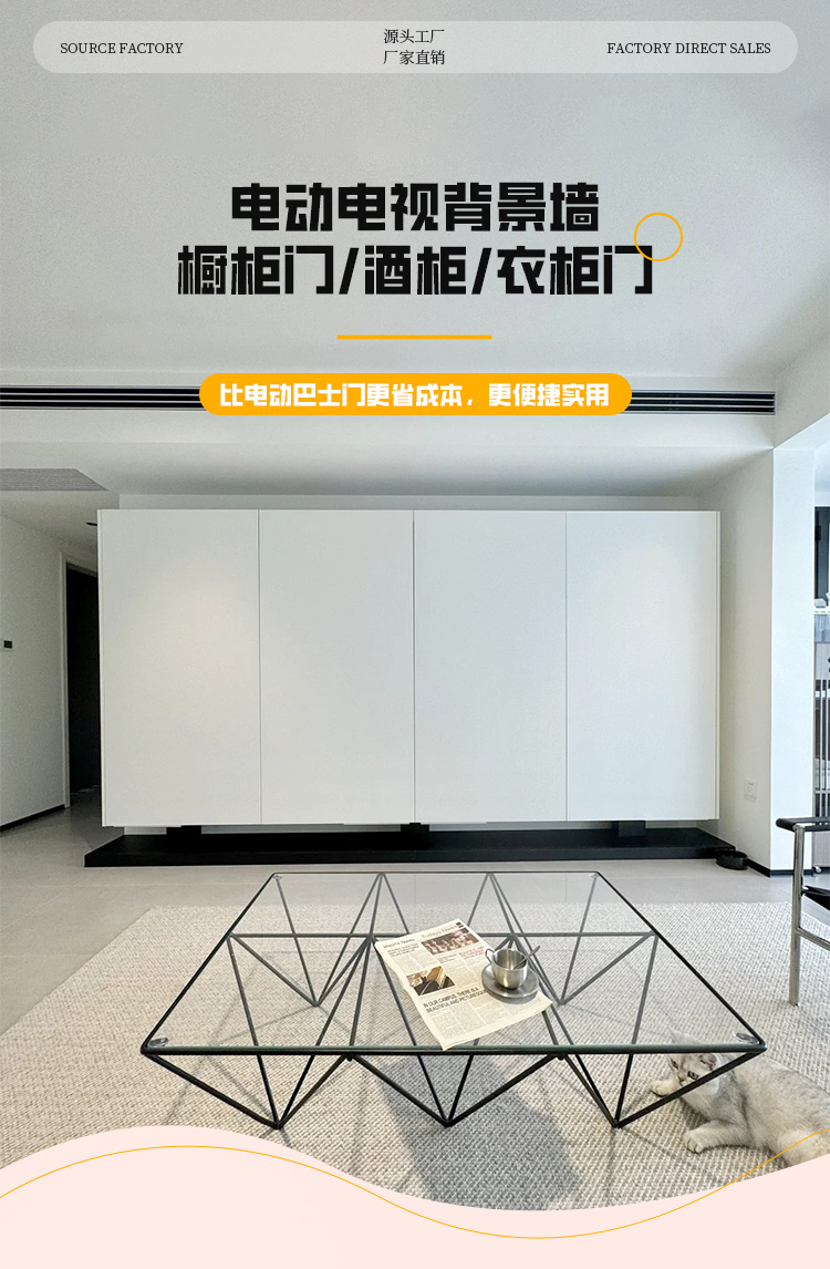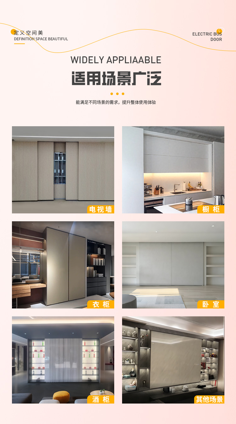 室内巴士电动门磁悬浮电视背景墙自动塞拉酒柜橱柜门电动五金轨道