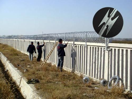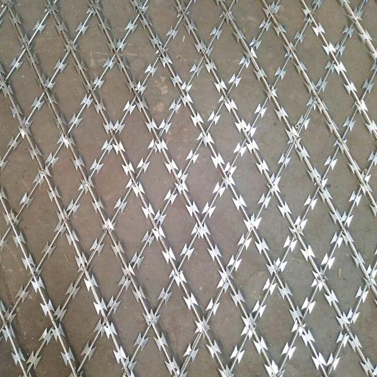 螺旋式刀片刺绳常见的材质是优质的低碳钢板冲压成的刀片形状,芯线是优质的低碳钢丝。