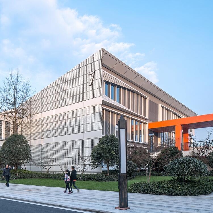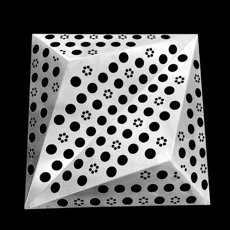 金属穿孔板即是以各种金属板材为原料,通过冲孔机械将板材局部呈规律性地打出各种孔洞,形成特殊的质感肌理。规范规定每个孔洞的大小不能小于板的厚度,一般都是在1mm到500mm的范围之内。孔洞的形状可以是圆形、矩形、不规则形等;孔洞的排列方式可以呈线性、集中性或者不规则性。孔洞之间的间距要控制好,需要结合金属穿孔板的透明度、整体刚度等综合考虑。