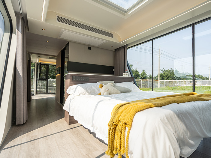 民宿太空舱可以根据场地的具体条件进行灵活布置,不仅可以安装在传统民宿的庭院中,还能嵌入到城市的楼顶、露台等特殊空间,甚至能作为独立单元放置在自然环境中,满足不同旅客的个性化需求。