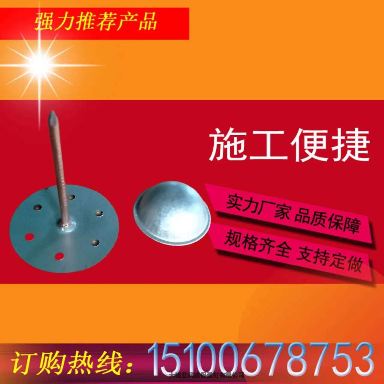大城阔成保温钉位于河北省廊坊市大城县大广安工业园区,是一家加工制作保温钉的一家工厂,附近物流特别多,发货也很便捷,无论您在哪里都能给您送货上门,选择我们是您不错的选择,本公司生产的保温钉多样化,质量您都大可放心,咱们的保温钉支撑力强,硬度高,施工还是非常的便捷,并且还生产胶水铝制粘钉,自粘型保温钉,撕开背部胶贴粘在需要做保温的物体上就可以了,是不是也很便捷呢!保温钉的品类化在这里就不多介绍了,如果您需要可以电话联系我,同步!期待您的来电,