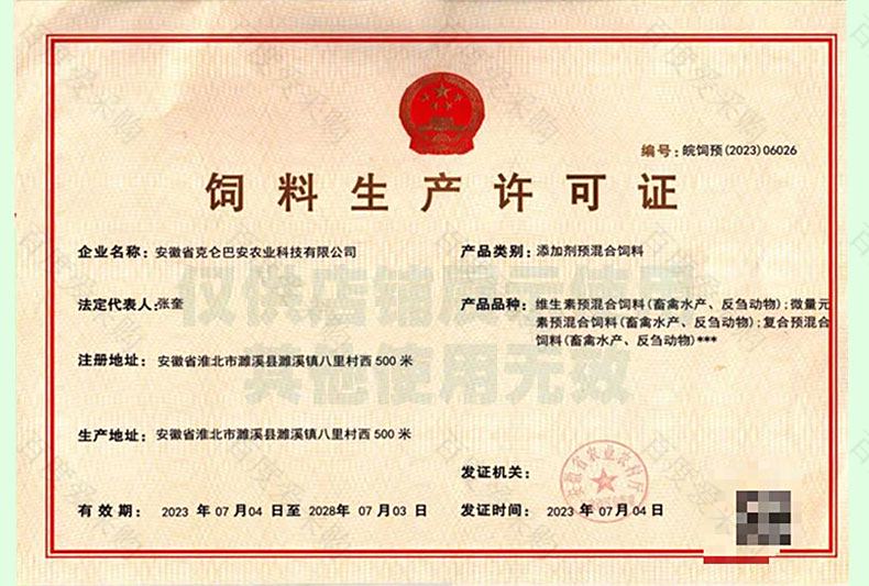 | 生产经营许可证 | 皖饲预(2023)06026 | ||