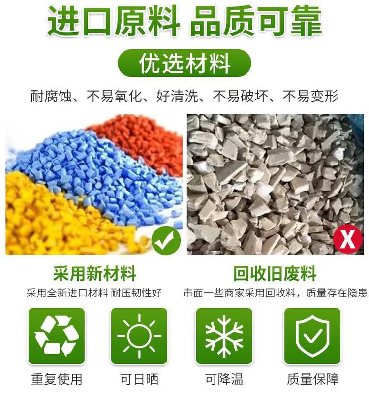 | 塑料新料占比 | 80%—99%新料 | ||
