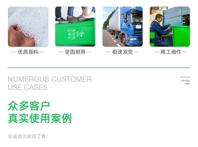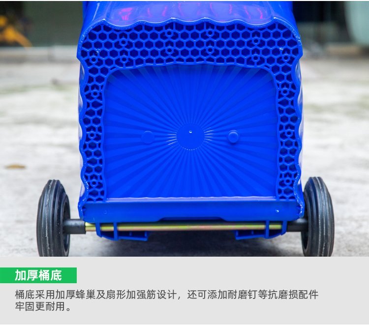 桶体四面加强筋设计,沿口蜂巢设计,底部波浪形加蜂巢设计更耐冲击,使用寿命更长;