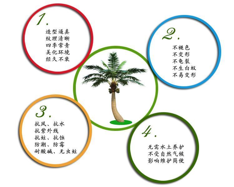 | 产品材质:树叶:高级油光布 金属杆 树杆:玻璃钢 钢结构 |