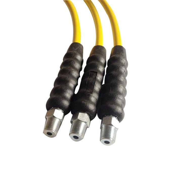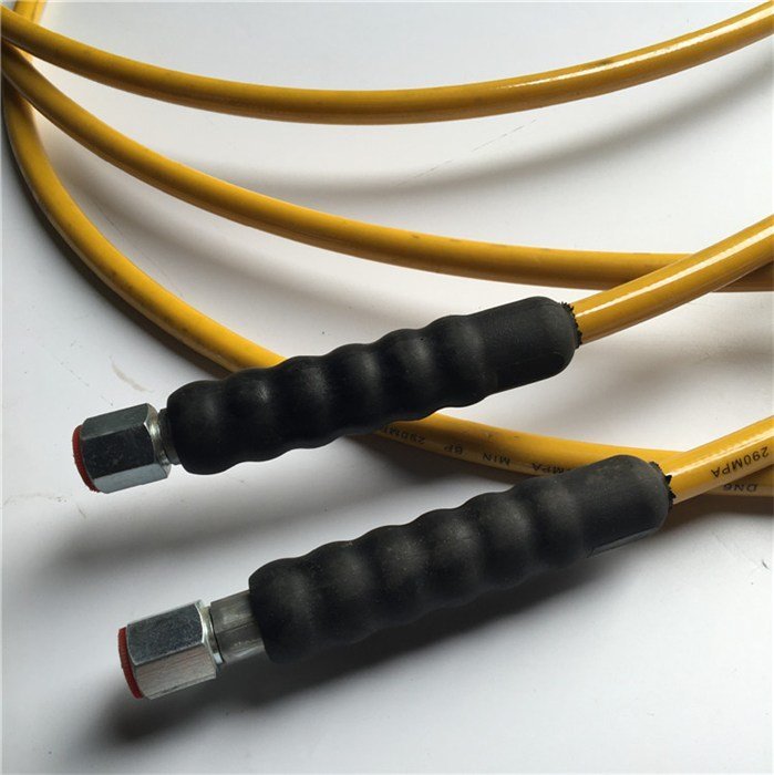 在配备超高压软管时要根据超高压清洗机主机的要求进行选择,因为超高压清洗机的压力与流量有非常严格的规定或限制,管内通径的改变会影响高压水射流最1前端的工作打击力及系统的平衡。实验证明,将通径为4mm超高压软管替代规定通径为5mm超高压软管,结果使用寿命降至原先三分之一。1、液压油泵吸入了气泡:为了排除这些空气可以将整套液压系统进行一次空载运转,将里面的空气彻底排除干净后再往液压站里面注入液压油。超高压软管对使用、存放和保管都有具体的要求。