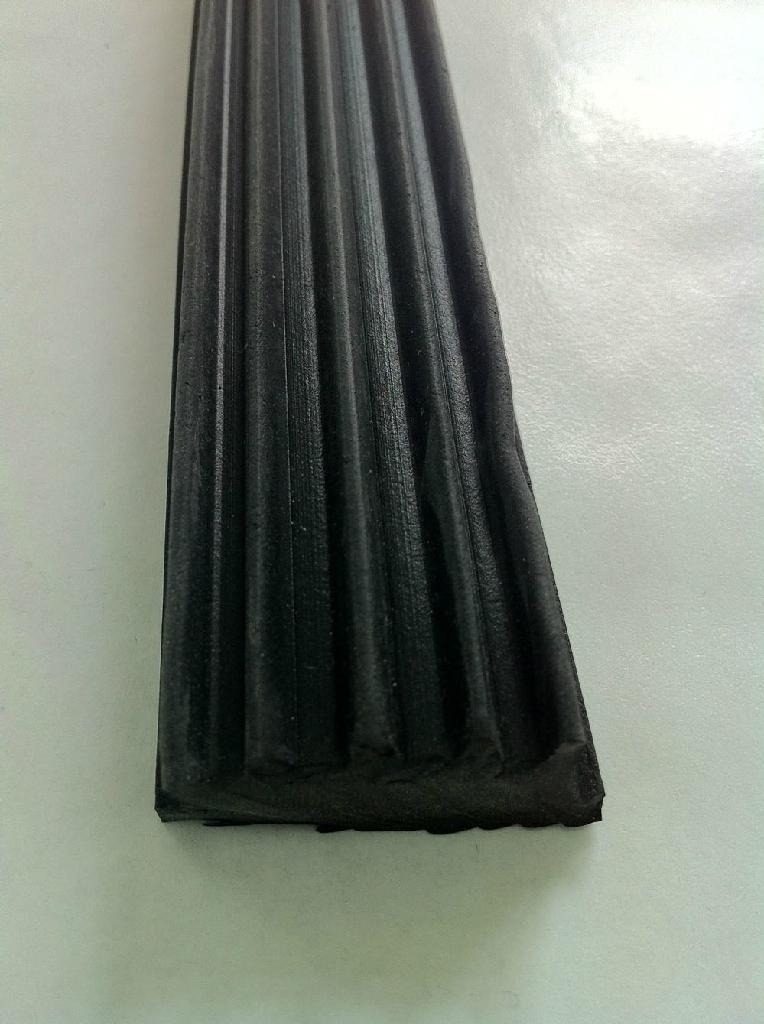 可分为实芯制品(圆形、方形、扁平形断面形状)、中空制品及金属橡胶复合制品等类型。其中,金属橡胶复合密封条占60%以上。对于橡胶密封条来说断面设计至关重要。首先是密封唇边形状、尺寸设计,两侧密封唇边应以相同的、大小适当的力从车窗玻璃的两侧接触玻璃。唇边长度、薄厚应适当,过厚、过长会使玻璃升降阻力偏大,过薄、过短又会导致玻璃得不到良好的引导和密封,产生振动、噪音、漏雨现象;其次是断面底部形状、尺寸设计,车窗钢槽断面上有凸起,其作用是为了装配导槽,因此,导槽断面底部应设计出相应结构,既易于装入,又能利用密封条自身的弹性附着在钢导槽内,防止其脱出;然后是外搭边的形状、尺寸,为了改善外观,导槽外饰面应与车身紧密贴合。
