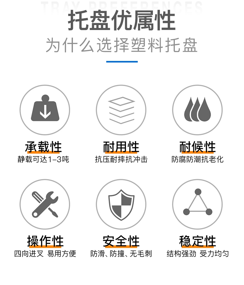 7. 塑料托盘使用安全、卫生、防虫防蛀,无需修理。