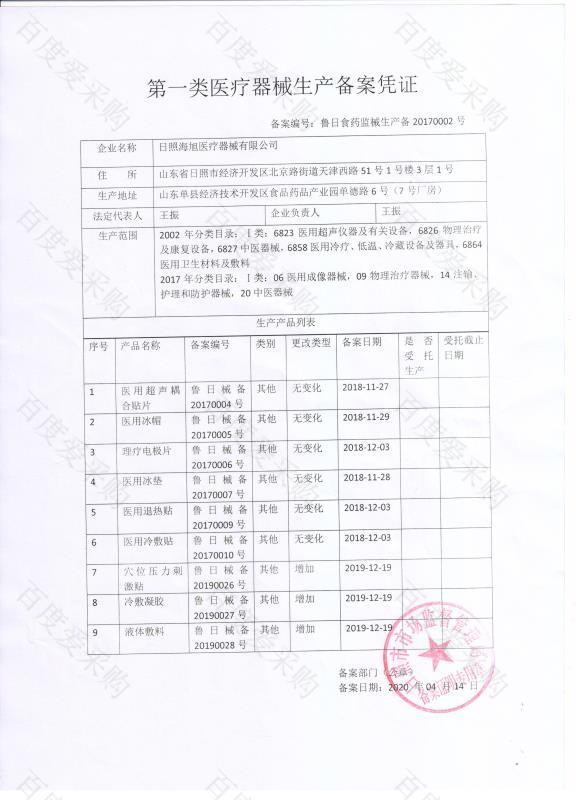 | 生产厂家 | 日照海旭医疗器械有限公司 | ||