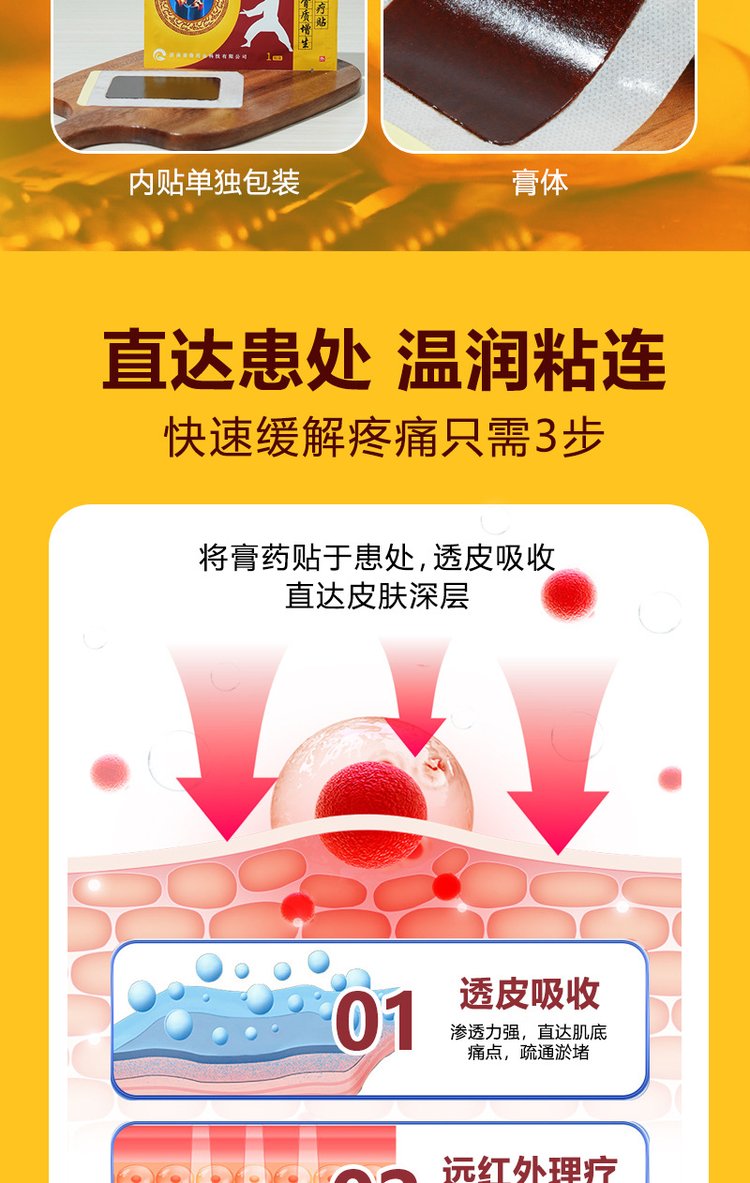| 功效 | 缓解颈椎病、肩周炎、骨质增生、腰椎间盘突出、风湿关节炎、跌打损伤引起的不适 | ||