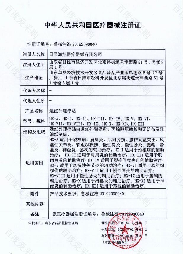 | 生产厂家 | 日照海旭医疗器械有限公司 | ||