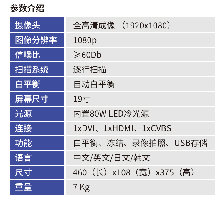 | 光源 | 内置80W LED冷光源 | ||