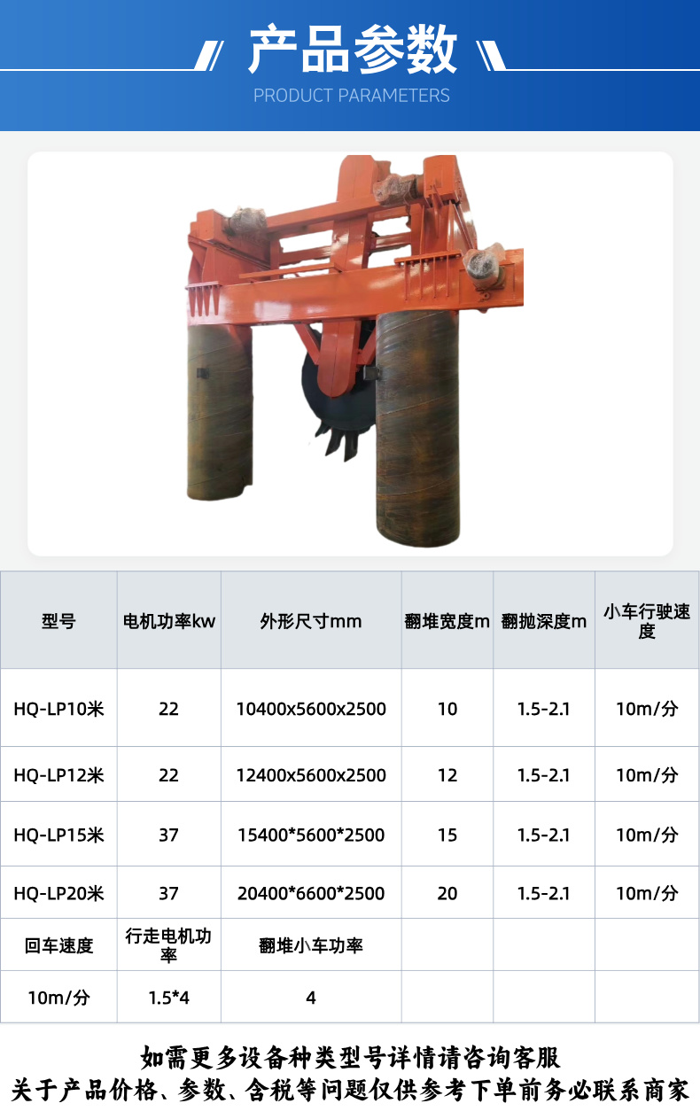| 翻堆高度 | 1.5-2.1m | ||