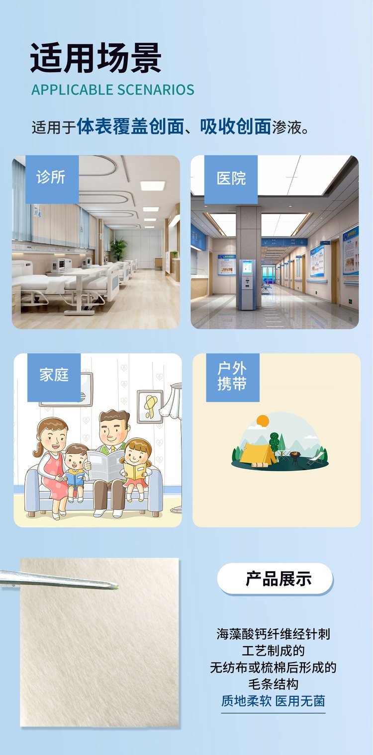 适用范围适用于体表覆盖创面,吸收创面渗液