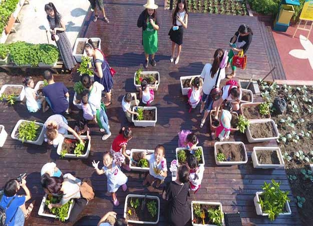 城市家庭种菜梦田都市农场占地近万平米,是以商场综合体楼顶为平台,以园林景观设计为框架,以绿色有机蔬菜为载体,为都市人群提供休闲娱乐、农耕教育、阳台种植、萌宠乐园、生态餐厅、农夫集市等一站式新型科技农业体验式服务,让人们在体验、观赏、学习的同时,切身感受现代科技和田园生活相结合的无穷魅力。