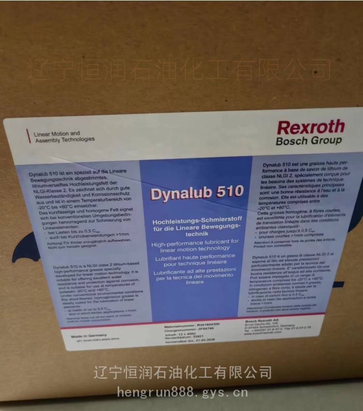 总的来说,Rexroth Dynalub 510是一款高性能、多功能的润滑脂,具有出色的耐久性、保护性和长寿命,可广泛应用于各种工业和重型设备的润滑。