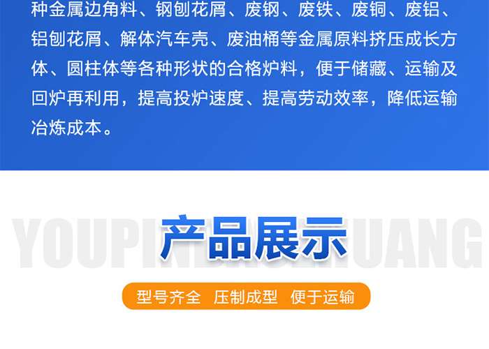 | 用途范围 | 用于各种金属废料的压块成型 | ||