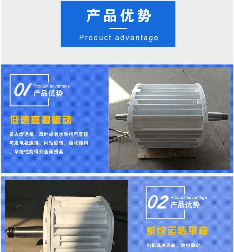 1.磁钢采用有磁铁王之称的钕铁硼,型号:N35SH,高等级纯铜丝绕组,发电效率高稳定;