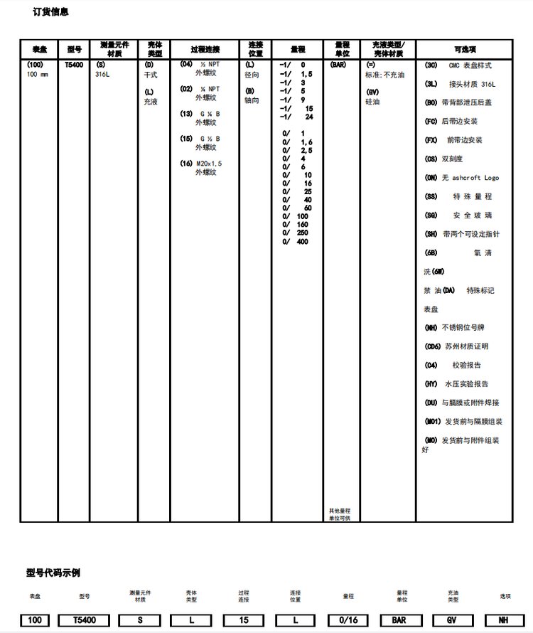 Ashcroft? T5400全不锈钢压力表具有可靠性,安全性等卓越性能。可广泛满足大部分市场应用和安装要求。
