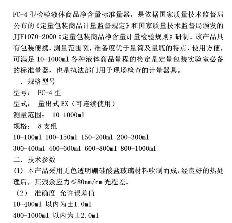 | 用途 | 检验液体净含量 | ||