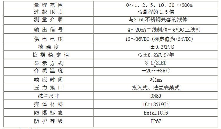| 压力接口 | 投入式、法兰安装式 | ||