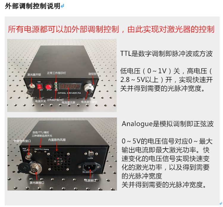 | Modulation | 0~30khz Analog or TTL | ||