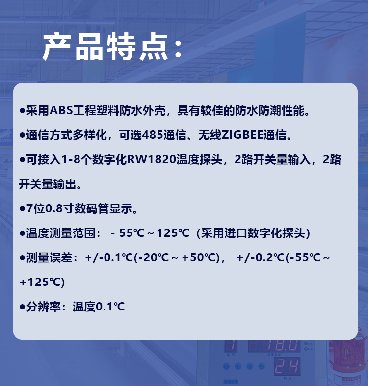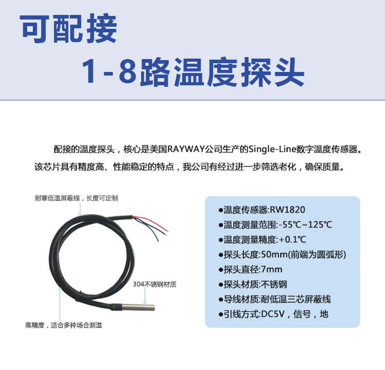 | 可配接 | 1-8个数字化RW1820温度探头 | ||