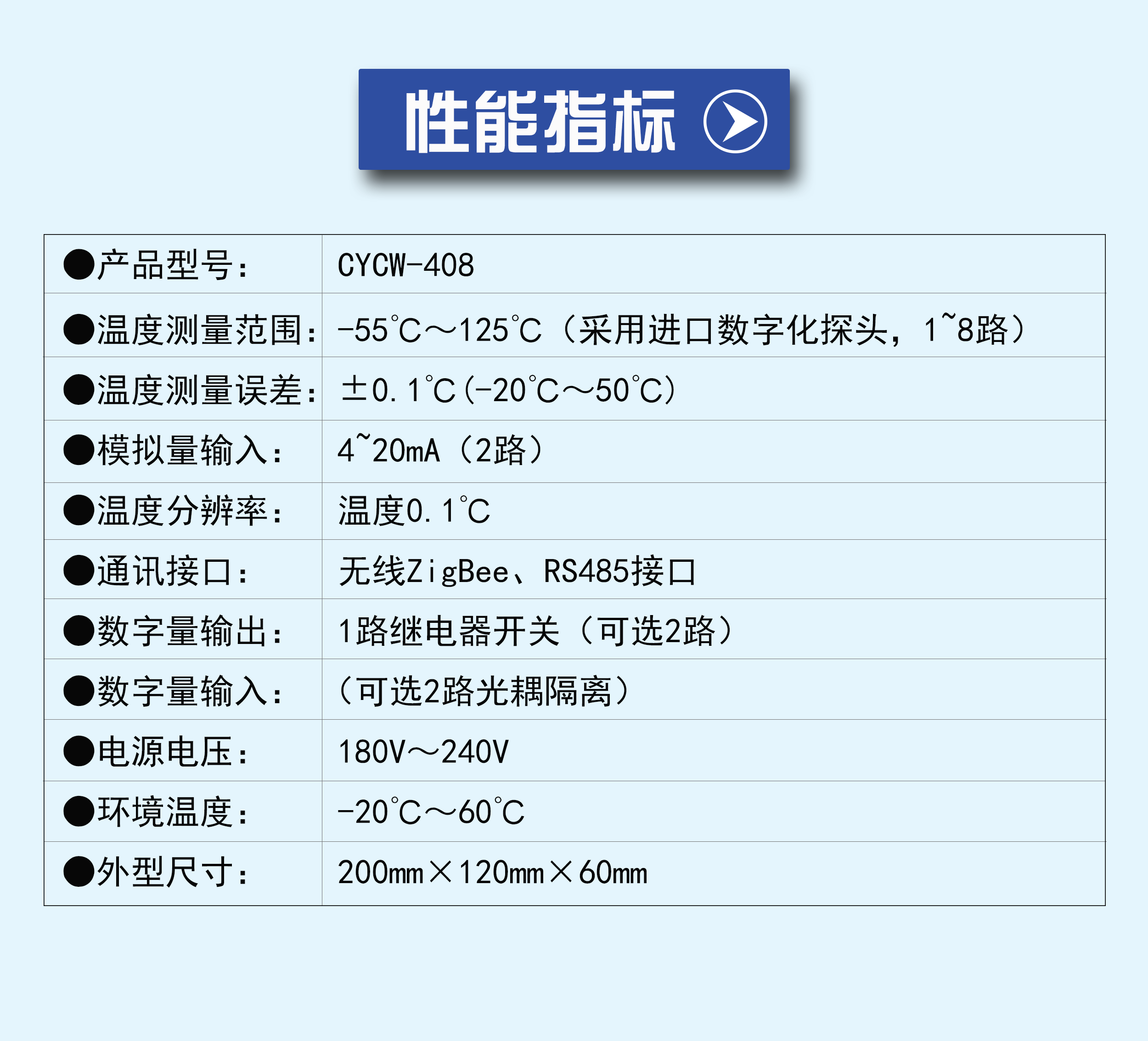 | 型号 | 智能温度表CYCW-408 | ||