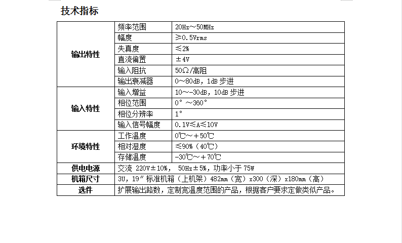 | 输出衰减器 | 0~80dB,1dB步进 | ||