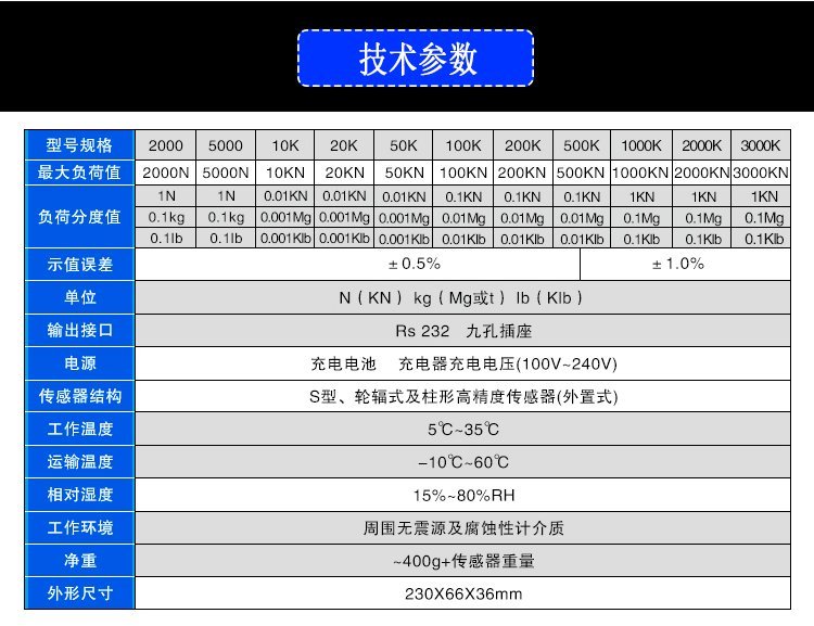 | 量程范围 | 0-2000N | ||