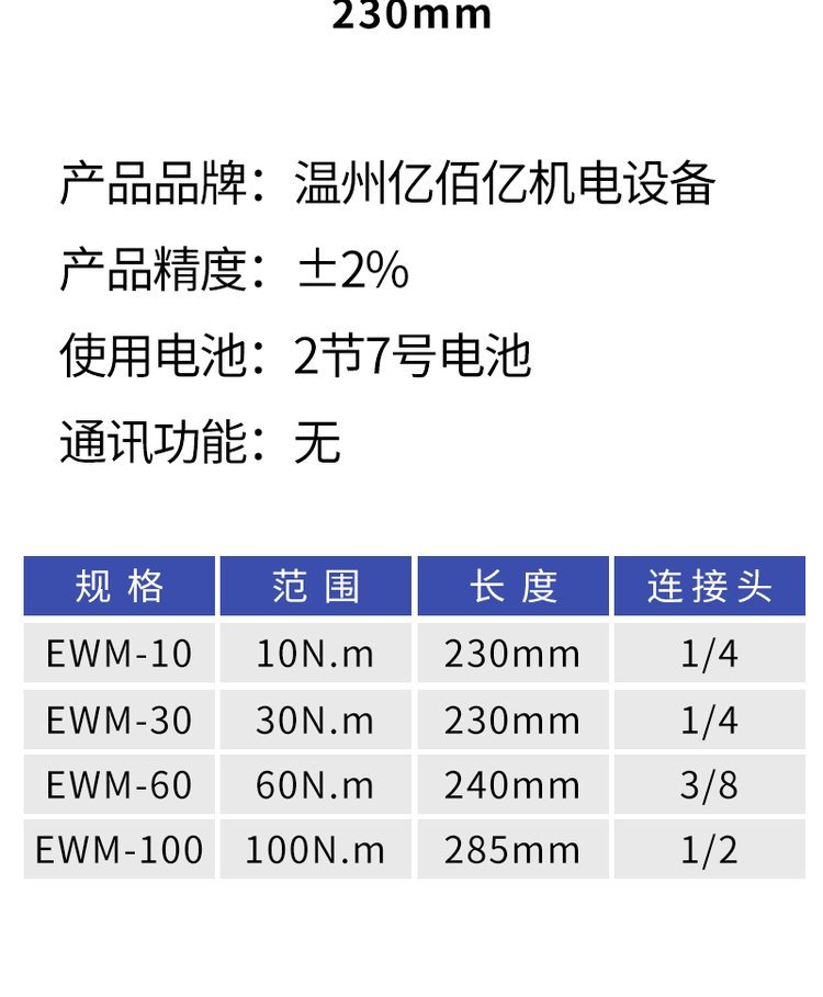 | 长度 | 230、285等多种长度可选 | ||
