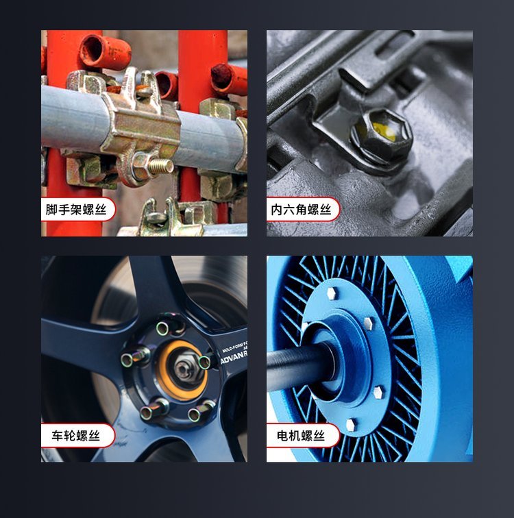 | 适用范围 | 螺栓、脚手架螺丝、内六角螺丝、电机螺丝等 | ||