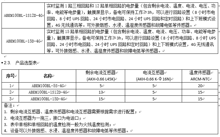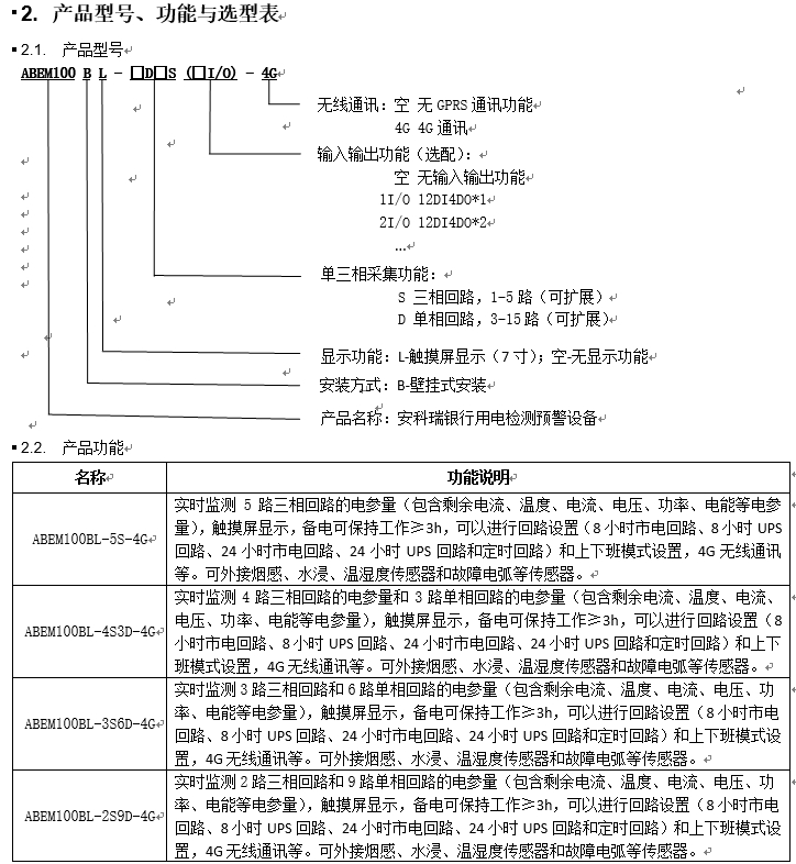 2、产品型号、功能与选型表