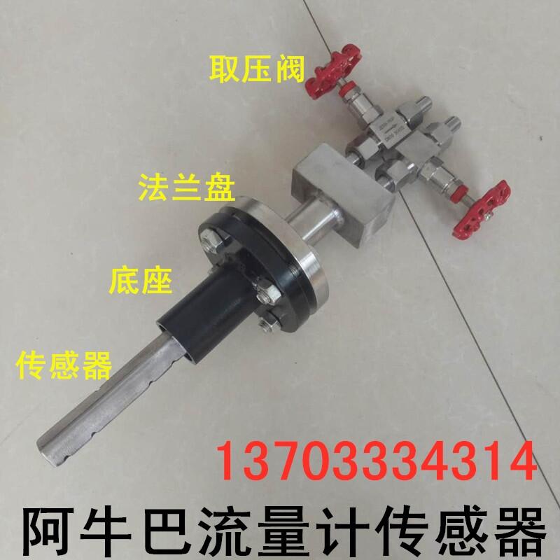 阿牛巴流量计(又称笛形均速管流量计)是根据皮托管测速原理发展起来的一种新型差压流量检测元件,它输出为差压信号,与测量差压的仪器仪表配套使用,可准确测量圆形管道、矩形管道中的多种液体、气体和蒸汽(过热蒸汽和饱和蒸汽)的流量,并以其精度高、压力损失小、安装方便等优点逐渐取代孔板和其它检测元件,在动力工业(包括核工业)、化学工业、石油和金属冶炼等工业中得到广泛应用。