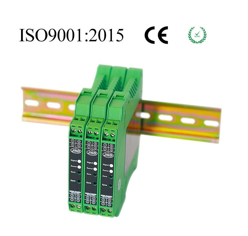 深圳捷晟达科技JSD TAW-4004-100L四通道模拟量两线制无源4-20mA隔离变送器,是将输入与输出之间电气绝缘的模拟信号进行隔离的小型仪表设备,该设备接收现场仪表的各种模拟量信号输入,通过模拟量信号隔离变送器进行信号隔离调理,以标准模拟量信号的形式传输到控制室或PLC、PC及DCS系统。本产品的输入、输出、通道间相互隔离,隔离电压高达3000VDC,在电量隔离测控的工业现场、电力监控、医疗电子设备、模拟量4-20mA信号隔离及采集,远程信号长线无失真传输等方面广泛应用。该模拟量信号隔离变送器采用电磁隔离技术,具有高输出精度、极低温飘特性、高线性度,适合在震动,潮湿的工业应用现场,产品无需工作电源供电,国际标准DIN35mm导轨安装方式,方便使用时安装便捷等特点。如需单通道小体积的隔离变送器请选购:DIN35 1*1 MI 4-20mA 或选购JSD TAW-1001-100L系列隔离变送器.