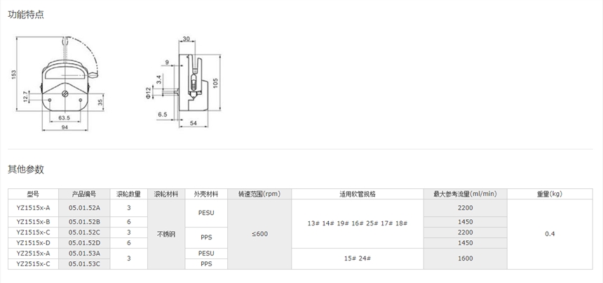 兰格易装型蠕动泵头YZ1515x(PPS)