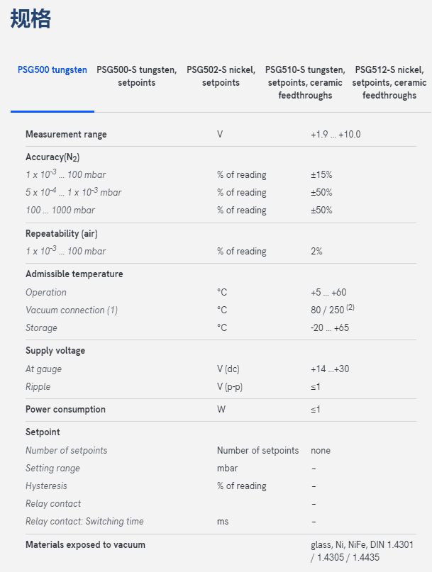 INFICON Pirani 标准真空计 PSG500、PSG502-S、PSG510-S 和 PSG512-S 采用当今市场上的数字 Pirani 技术,不锈钢传感器单元坚固耐用,结构设计紧凑,适用于半导体系统和标准应用,例如前级真空管。