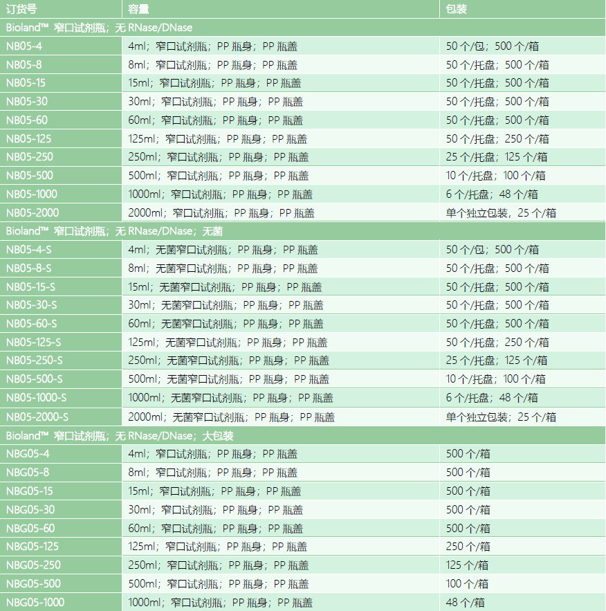 Bioland? 窄口试剂瓶;PP 材质