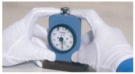 (一) 手动测量时,握持的橡胶硬度计加压面以一定的速度从上垂直压在工件上并贴合于工件的表面,依标准规定的时间内读取指针测量的值视为“硬度”。