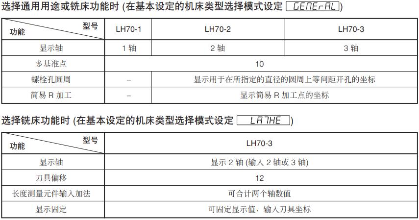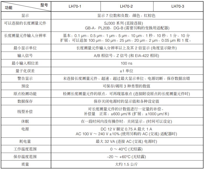 磁栅数显表LH70:LH70-1,LH70-2,LH70-3,分辨率随连接传感器变化,1,2,3轴显示。具有复位、预置、数据存储、报警输出、线性误差补偿等功能。公/英制转换,绝对/相对位置检测,预置位置功能,直径显示,角度显示、弧度等分功能,切换功能,停电记忆,简单计算。配合Magnescale磁栅尺,高度计使用。