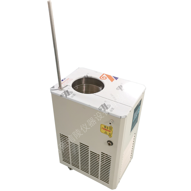 低温冷却液循环泵是利用全封闭压缩机机械制冷,冷却槽内壁盘有冷却铜盘管,制冷剂通过水槽内壁的盘管不停循环,对槽内冷媒进行冷却,可将反应容器直接放入冷却槽内对物料进行间接冷却,也可利用循环泵将冷媒打入其它设备:结合旋转蒸发器或反应釜的玻璃冷凝器冷却盘管使用时,可对冷凝器内蒸汽进行冷却、液化,提高回收效率;结合反应釜夹层使用时,可对釜内物料进行冷却;也可用于其它有夹层的反应容器或能通冷却液体的任何装置。可配合旋转蒸发器、玻璃反应釜以及其它带夹层或冷却盘管的仪器设备使用,也可将需冷却的物体或容器直接放入浴槽内进行冷却或反应。