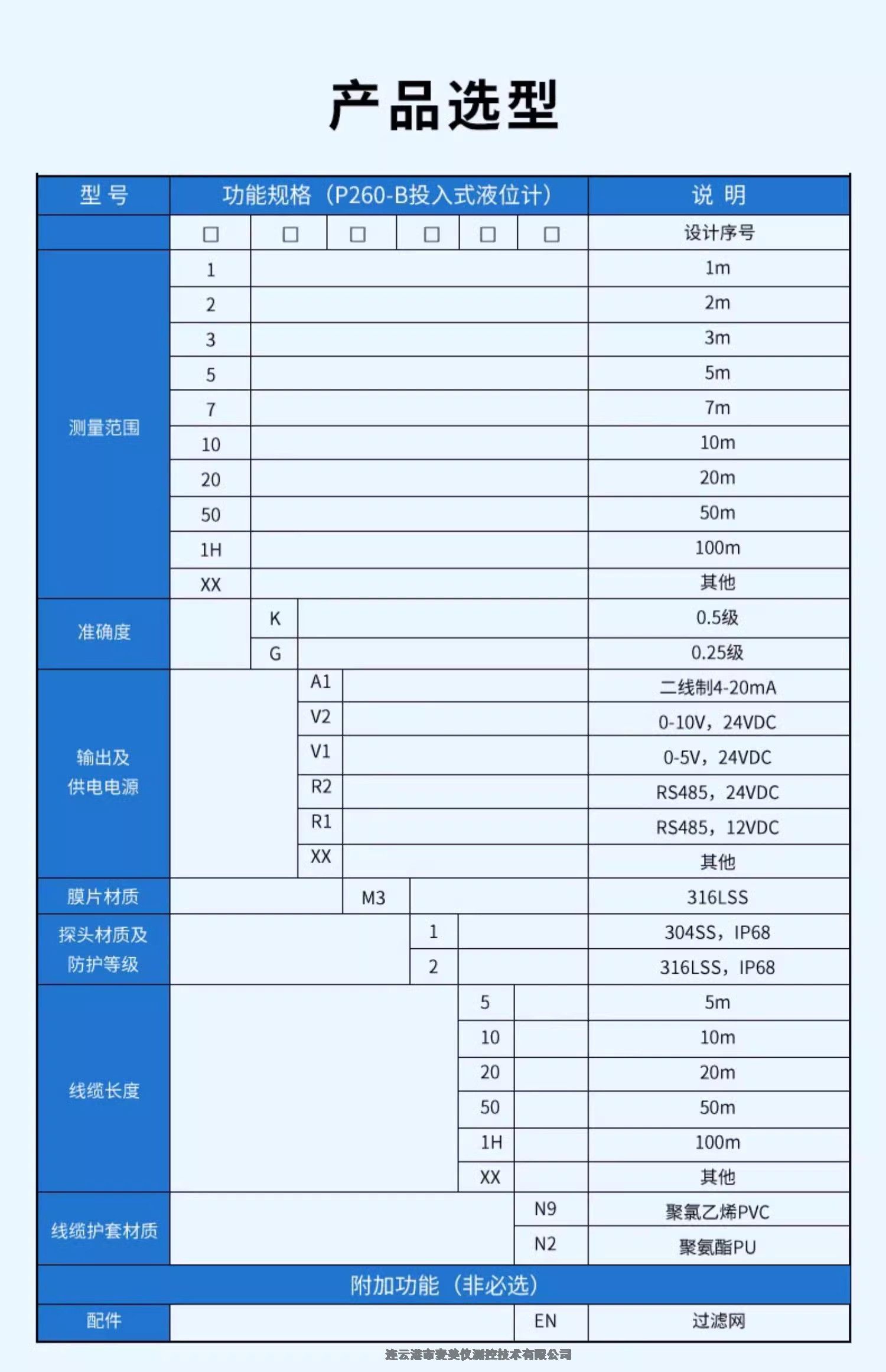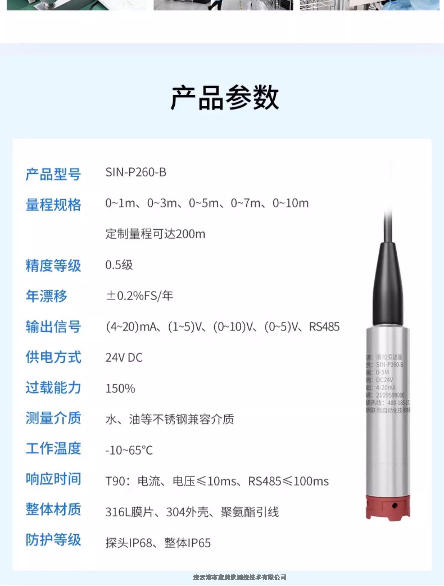 联测SIN-P260投入式液位变送器4-20mA一体式水位计0-5m物位探头