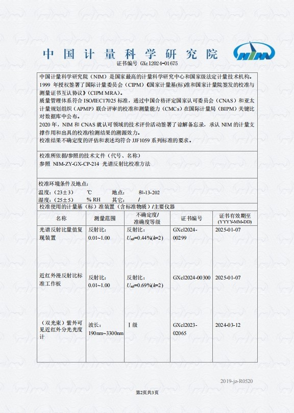 合格证 说明书 《中国计量院检测的漫反射比数据复印件》 |