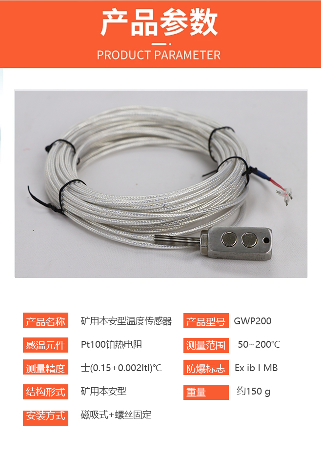一、产品概述:矿用磁吸式PT100 GWP200