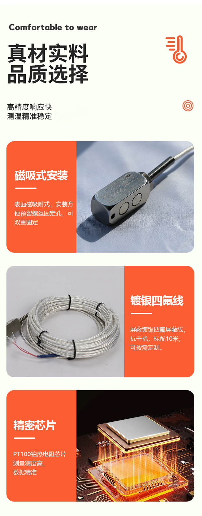 快速响应时间:内部结构优化,实现温度变化实时响应,满足动态温度监测需求。