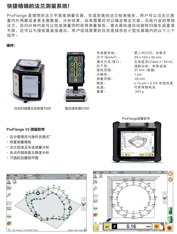 德国Status pro激光法兰测平仪塔筒专用型Proflange100激光测平仪 StatusPro公司的激光测量系统:操作简单并测量精准,使用此激光测量系统能高效并快速的完成测量:软件ProflangeV3对于法兰测量提供了优化的数据分析和记录功能。该软件是本公司针对法兰测量与风力发电行业共同设计研发的。激光法兰测平仪代理商激光法兰测平仪价格激光法兰测平仪德国品牌