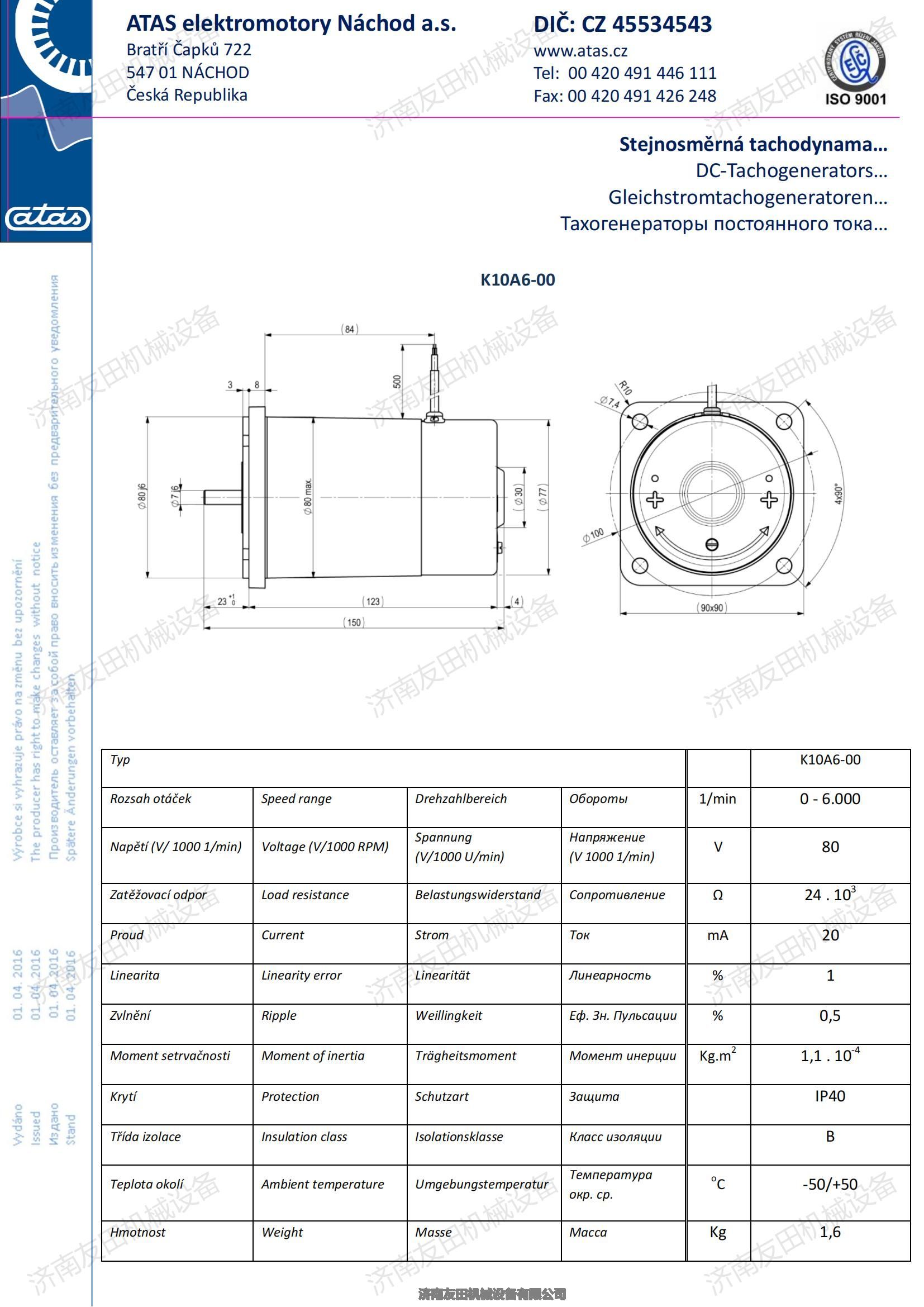 机床直流测速机K10A6一00 捷克ATAS原装