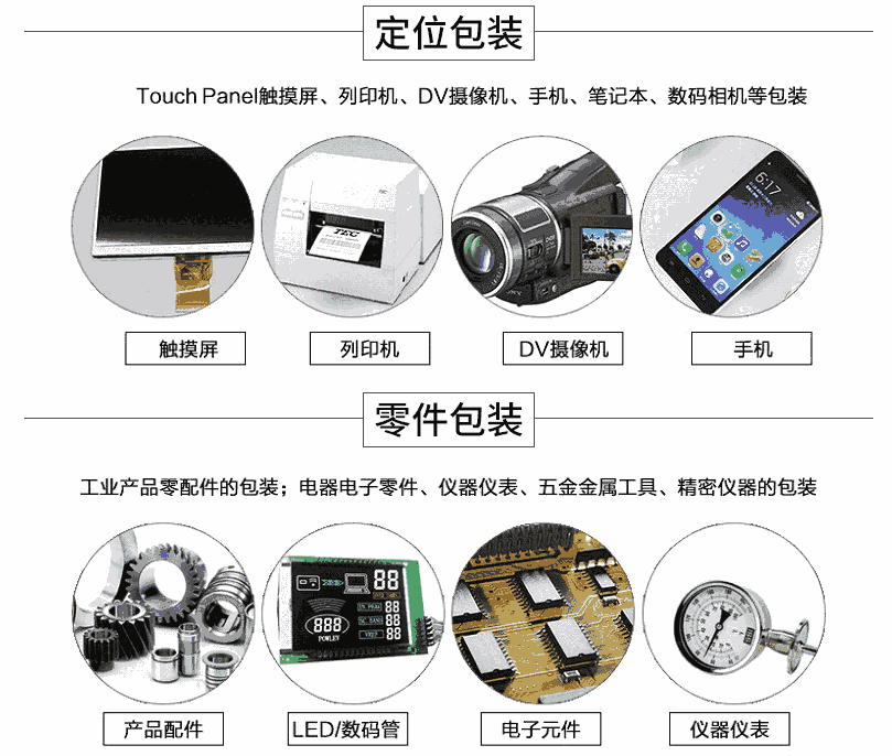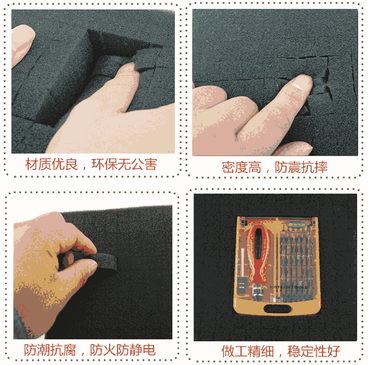 手感细腻,具有较强的回弹性,持久使用不易变形,切割平整。环保材料,对各行各业产品起到缓冲、密封、保温、减震、防尘、防火、防静电、填充、隔音、吸音、固定和美化等功能。